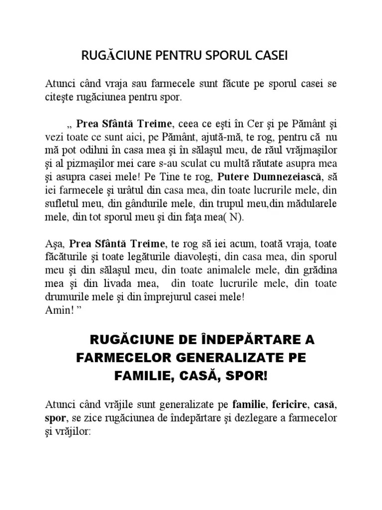 01/07/2013 · există şi rugăciuni pentru sporul casei care se pot face de către cei care sunt în necazuri şi în lipsuri.. Rugăciune către sfântul mare mucenic mina, pentru ajutor la găsirea lucrurilor pierdute; Rugaciune catre mantuitorul iisus hristos pentru izbavire de boala. "binecuvintează, suflete al meu pe domnul! Cea mai puternică rugăciune pentru protecție, spor în casă, mângâiere în necazuri și ajutor în familie!. Doamne iisuse hristoase, dumnezeul nostru, dumnezeu milostiv si indurator, a carui dragoste pentru oameni nu are margini;